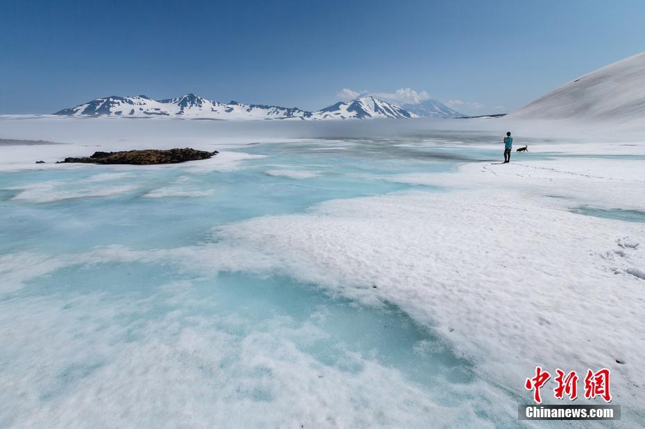 當(dāng)?shù)貢r(shí)間2020年7月7日,俄羅斯堪察加半島,Gorely火山附近的Sredinnoye火山湖。這個(gè)湖斷斷續(xù)續(xù)的,是6月底到8月初融雪形成的。圖片來源:視覺中國(guó)