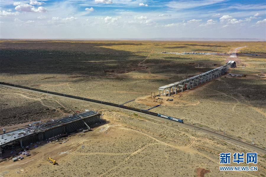 烏瑪高速青銅峽至中衛(wèi)段穿越騰格里沙漠的18公里路段,與中國(guó)首條沙漠鐵路——包蘭鐵路交匯(7月10日攝,無(wú)人機(jī)照片)。盛夏時(shí)節(jié),位于寧夏境內(nèi)的烏瑪(內(nèi)蒙古烏海市至青?,斍呖h)高速青銅峽至中衛(wèi)段正在抓緊施工建設(shè)。該路段主線全長(zhǎng)122.9公里,其中穿越騰格里沙漠腹地的18公里公路是寧夏建設(shè)的首條沙漠高速公路,預(yù)計(jì)2021年建成通車。新華社記者馮開華攝。