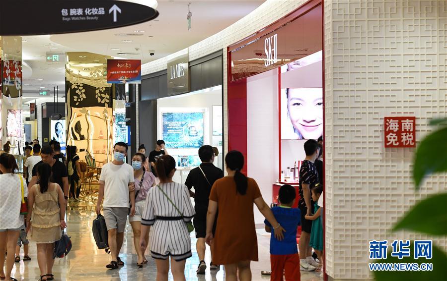 7月12日,游客在??谌赵聫V場(chǎng)免稅店購物。新華社記者 楊冠宇 攝