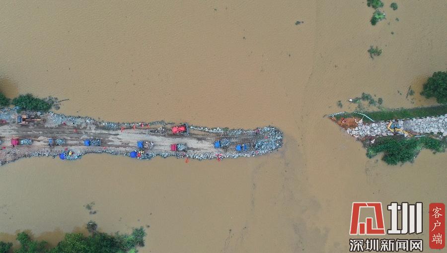2020年7月13日,江西鄱陽縣問桂道圩,決口封堵進入最后攻堅階段。受持續(xù)強降雨影響,7月8日20時35分,位于江西省上饒市鄱陽縣鄱陽鎮(zhèn)的問桂道圩堤出現(xiàn)漫決險情,導(dǎo)致良田、村莊受淹,受淹村民已安全轉(zhuǎn)移。連日來,中國安能第二工程局在此處對問桂道決口圩堤進占填筑,目前進入最后攻堅階段。