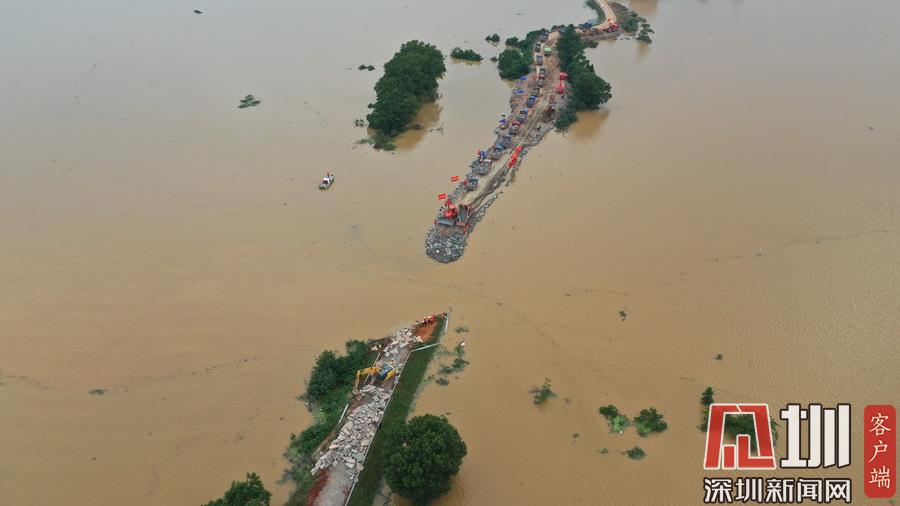 2020年7月13日,江西鄱陽(yáng)縣問(wèn)桂道圩,決口封堵進(jìn)入最后攻堅(jiān)階段。受持續(xù)強(qiáng)降雨影響,7月8日20時(shí)35分,位于江西省上饒市鄱陽(yáng)縣鄱陽(yáng)鎮(zhèn)的問(wèn)桂道圩堤出現(xiàn)漫決險(xiǎn)情,導(dǎo)致良田、村莊受淹,受淹村民已安全轉(zhuǎn)移。連日來(lái),中國(guó)安能第二工程局在此處對(duì)問(wèn)桂道決口圩堤進(jìn)占填筑,目前進(jìn)入最后攻堅(jiān)階段。
