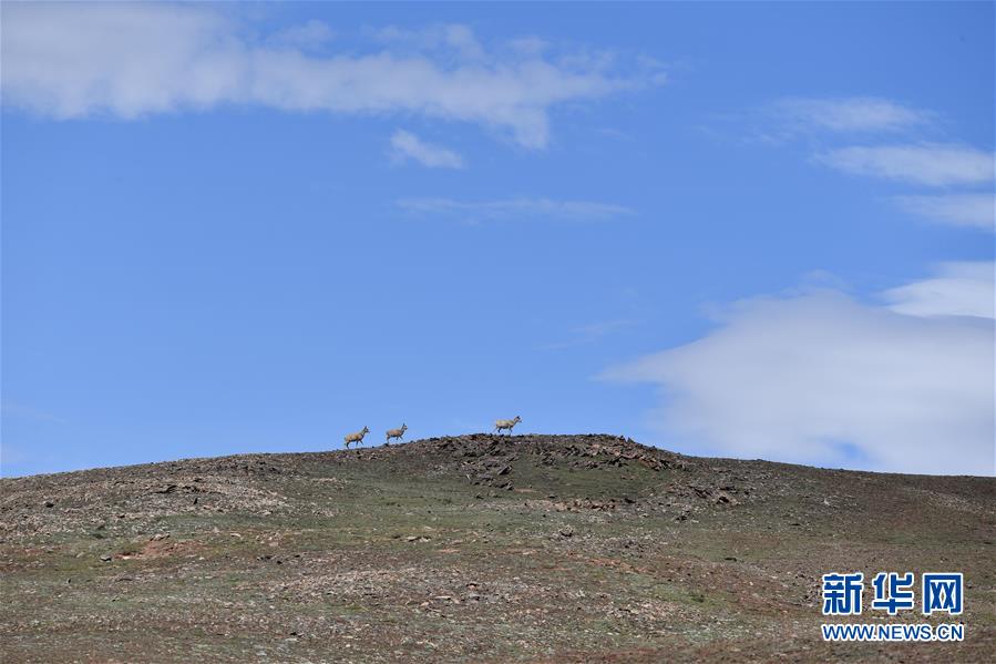 7月7日在可可西里卓乃湖區(qū)域拍攝的藏羚羊。目前正值藏羚羊產(chǎn)仔季。來自青海三江源、新疆阿爾金山、西藏羌塘等地的藏羚羊來到位于青海省可可西里腹地、被譽為“藏羚羊大產(chǎn)房”的卓乃湖區(qū)域產(chǎn)仔。新華社記者 薛玉斌 攝
