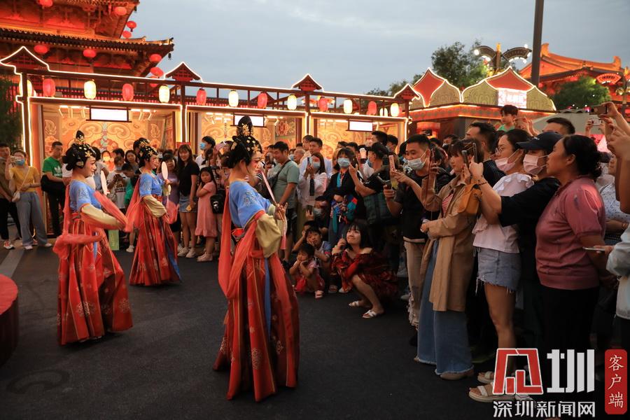 2020年7月14日,西安大唐不夜城游人如織,“煙火氣”十足,特色美食、樂(lè)隊(duì)駐唱、花車(chē)夜游等內(nèi)容,吸引著市民和各地游客“打卡”。昔日看夜景、品美食、夜購(gòu)物等場(chǎng)景,又在這條步行街被重新“點(diǎn)燃”。