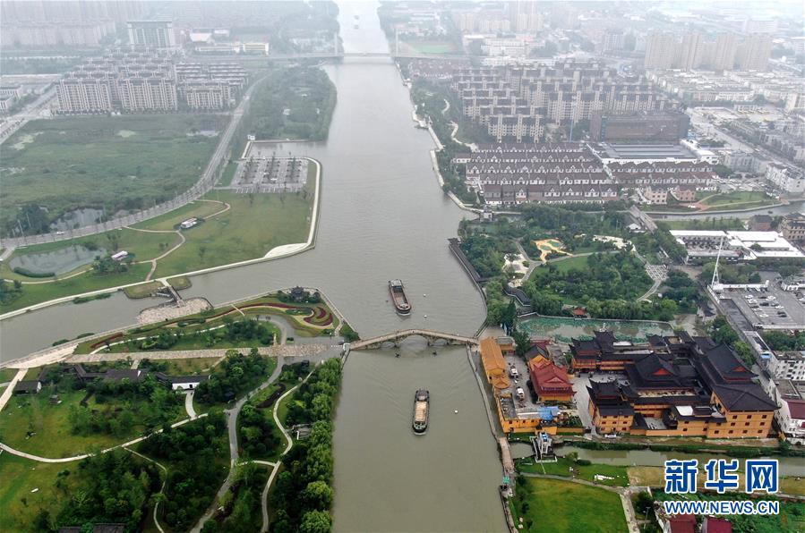 7月17日拍攝的秀洲區(qū)王江涇鎮(zhèn)長(zhǎng)虹橋附近的河道(無(wú)人機(jī)照片)。浙江省嘉興市秀洲區(qū)處在杭嘉湖平原,受持續(xù)強(qiáng)降雨及上游排水影響,近期,秀洲區(qū)境內(nèi)的京杭大運(yùn)河分支航道持續(xù)保持較高水位。當(dāng)?shù)叵嚓P(guān)部門嚴(yán)陣以待,落實(shí)各項(xiàng)措施,確保安全度汛。新華社記者韓傳號(hào)攝