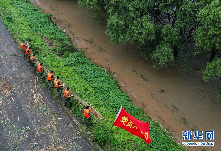 在揚中市長江大堤新壩鎮(zhèn)新寧村段,中國安能集團第二工程局常州分公司防汛前置備勤隊員在填充反濾料(7月17日攝)。捆蘆葦護邊坡、機器人進(jìn)涵洞、“養(yǎng)水盆”防滲漏……在江蘇鎮(zhèn)江,當(dāng)?shù)馗刹咳罕姾蛯I(yè)力量,因地制宜就地取材,老辦法搭配新技術(shù),一批險情得以消除在萌芽狀態(tài)。新華社記者季春鵬攝