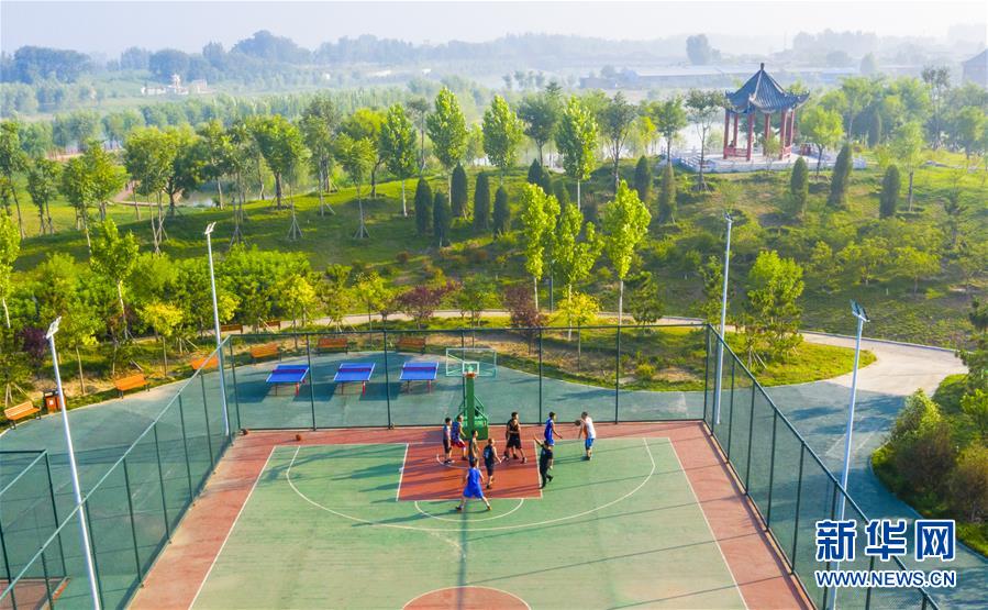 7月20日拍攝的河北省武邑縣觀津公園(無人機照片)。新華社記者李曉果攝