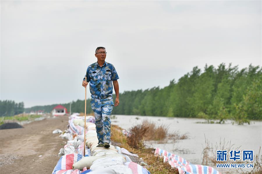 劉良武在江洲鎮(zhèn)的長江堤壩上巡查(7月19日攝)。新華社記者李鑫攝