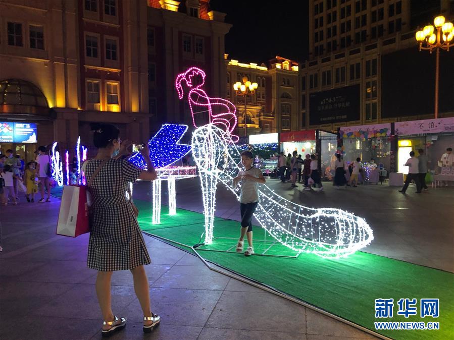 游人在天津“百戲津曲”文化主題街區(qū)拍照(7月19日攝)。新華社記者宋瑞攝