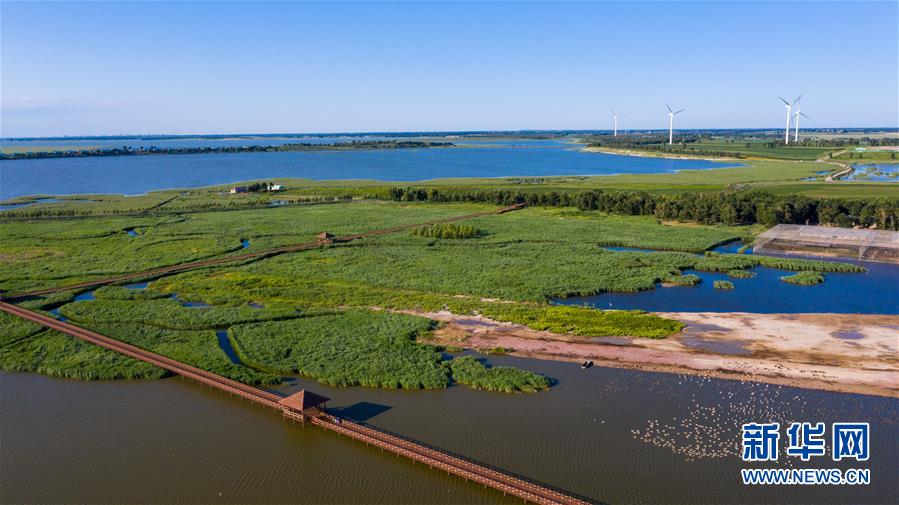 這是查干湖濕地(7月20日攝,無人機(jī)照片)。新華社記者張楠攝