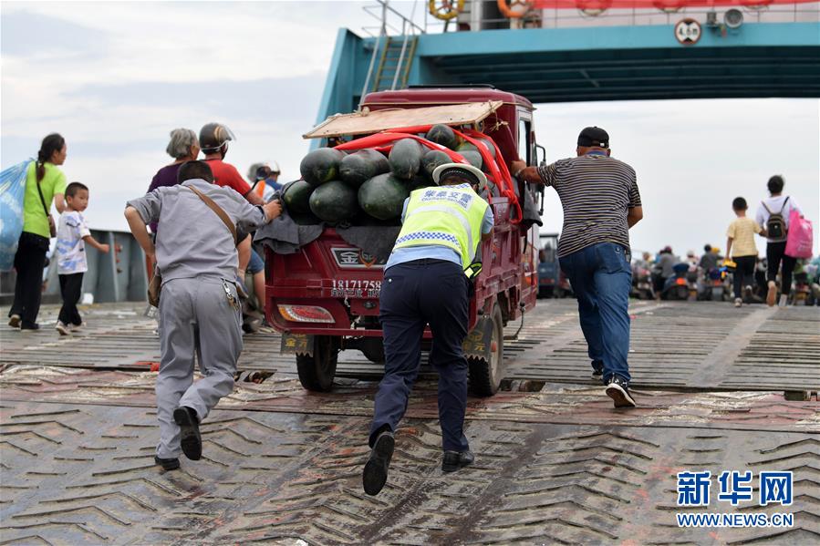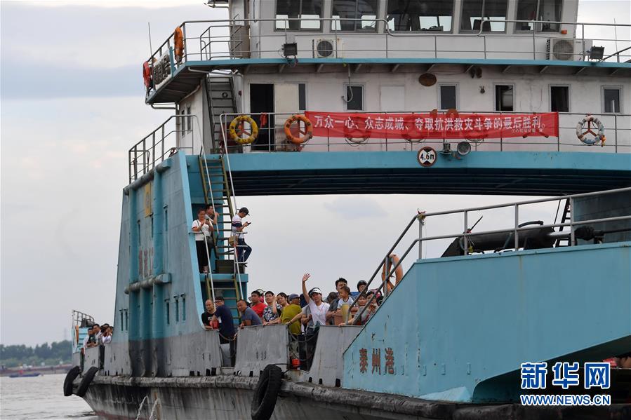 在江西省九江市柴桑區(qū)江新洲的渡口,部分居民登上渡輪撤離(7月12日攝)。新華社記者彭昭之攝