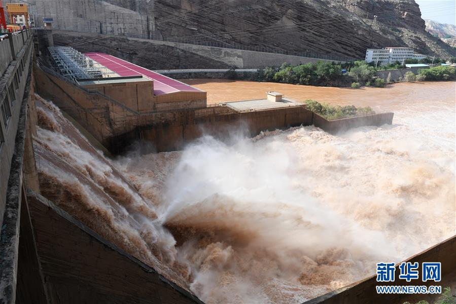 7月21日,鹽鍋峽水庫(kù)正在泄洪。新華社記者陳斌攝