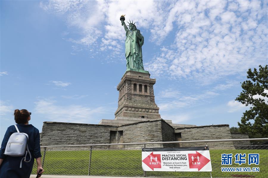 7月20日,參觀者在美國紐約自由島游覽。美國紐約市20日繼續(xù)推進經(jīng)濟重啟計劃,宣布開始進入解封新階段,進一步允許部分低風險文娛活動重啟。自由女神像所在的自由島對公眾開放,但雕像內(nèi)部和博物館仍關(guān)閉。新華社記者王迎攝