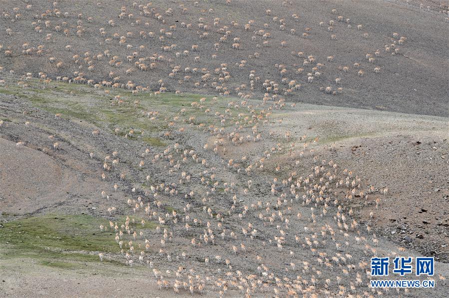 7月17日,藏羚羊群在西藏尼瑪縣榮瑪鄉(xiāng)附近悠閑吃草。2000年,西藏羌塘自然保護(hù)區(qū)晉升為國家級自然保護(hù)區(qū)。20年來,經(jīng)過西藏各級各部門的不懈努力,羌塘國家級自然保護(hù)區(qū)內(nèi)的重點(diǎn)保護(hù)野生動物種群數(shù)量明顯增加,其中,藏羚羊種群數(shù)量由原來的5至7萬只,恢復(fù)到目前的15萬只以上。羌塘國家級自然保護(hù)區(qū)核心地帶的西藏尼瑪縣榮瑪鄉(xiāng)附近,目前就有近6萬只藏羚羊。新華社記者覺果攝