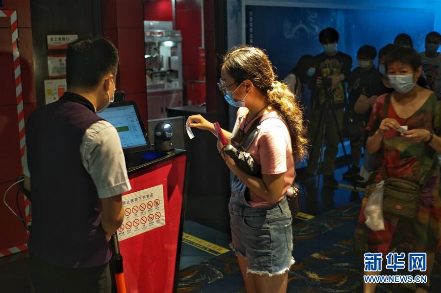7月24日,在首都電影院(西單店),市民排隊(duì)驗(yàn)票進(jìn)入影廳。當(dāng)日,在做好新冠肺炎疫情防控的前提下,北京市部分電影院有序恢復(fù)開(kāi)放。新華社記者 彭子洋 攝
