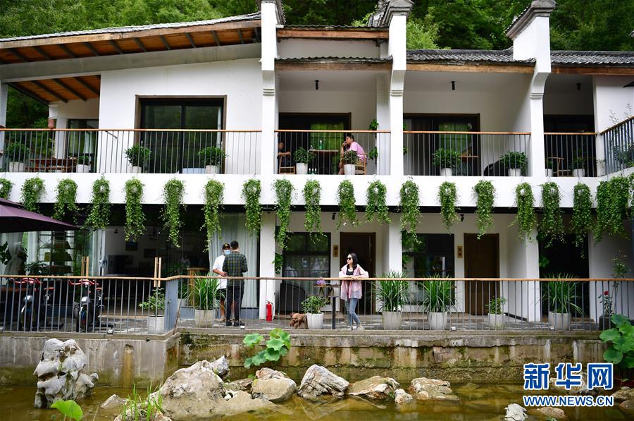 7月22日,在位于陜西柞水縣營盤鎮(zhèn)朱家灣村的終南山寨景區(qū),游客在一家民宿內住宿休閑。陜南地區(qū)地處秦巴山區(qū),是陜西脫貧攻堅的主戰(zhàn)場。近年來,陜南各縣區(qū)因地制宜、精準施策,通過發(fā)展社區(qū)工廠、特色種植、旅游扶貧、技能培訓、電商帶貨等措施,促進多種產業(yè)發(fā)展,助力農民增收。新華社記者邵瑞攝