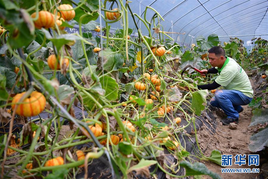 7月24日,在陜西漢陰縣澗池鎮(zhèn)紫云南郡易地扶貧搬遷安置社區(qū)配套的農業(yè)產業(yè)園內,社區(qū)居民唐文斌在管護大棚南瓜。陜南地區(qū)地處秦巴山區(qū),是陜西脫貧攻堅的主戰(zhàn)場。近年來,陜南各縣區(qū)因地制宜、精準施策,通過發(fā)展社區(qū)工廠、特色種植、旅游扶貧、技能培訓、電商帶貨等措施,促進多種產業(yè)發(fā)展,助力農民增收。新華社記者邵瑞攝