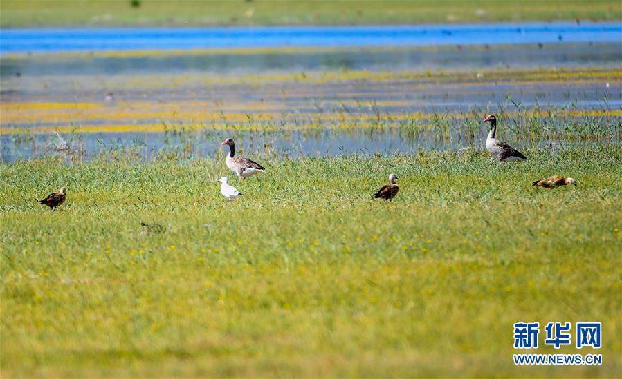 7月28日,灰雁和遺鷗在桃力廟—阿拉善灣海子覓食。鄂爾多斯?jié)竦匚挥趲?kù)布齊沙漠、毛烏素沙地接壤地帶,2002年被列入國(guó)際重要濕地名錄。從2006年開始,由于濕地湖面萎縮、湖心島消失,在此筑巢繁殖的世界瀕危物種遺鷗幾近消失。近年來(lái),當(dāng)?shù)夭扇《喾N治理措施,濕地生態(tài)環(huán)境逐步好轉(zhuǎn)。2019年起,濕地內(nèi)的桃力廟—阿拉善灣海子迎來(lái)遺鷗大規(guī)?!盎貧w”。如今,40多種鳥類在此棲息,鄂爾多斯?jié)竦刂匦鲁蔀轼B類的樂園。新華社記者彭源攝