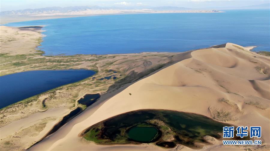 這是青海湖沙島風(fēng)光(7月28日攝,無(wú)人機(jī)照片)。盛夏傍晚,位于青海湖東北部的沙島,島內(nèi)湖泊星羅棋布,沙丘連綿起伏,風(fēng)景別致。金沙與湖水掩映,在陽(yáng)光的勾勒下形成一幅美麗的畫(huà)卷。新華社記者張宏祥攝
