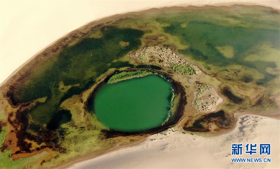 這是青海湖沙島風(fēng)光(7月28日攝,無人機(jī)照片)。盛夏傍晚,位于青海湖東北部的沙島,島內(nèi)湖泊星羅棋布,沙丘連綿起伏,風(fēng)景別致。金沙與湖水掩映,在陽光的勾勒下形成一幅美麗的畫卷。新華社記者張宏祥攝