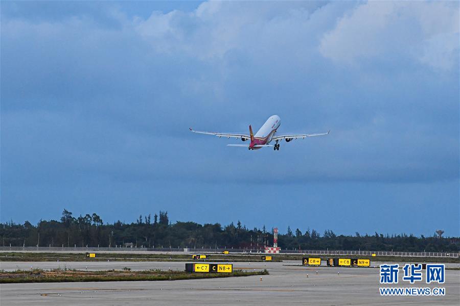 這是7月30日在??诿捞m國際機場二期擴建項目拍攝的試飛現(xiàn)場。新華社記者蒲曉旭攝