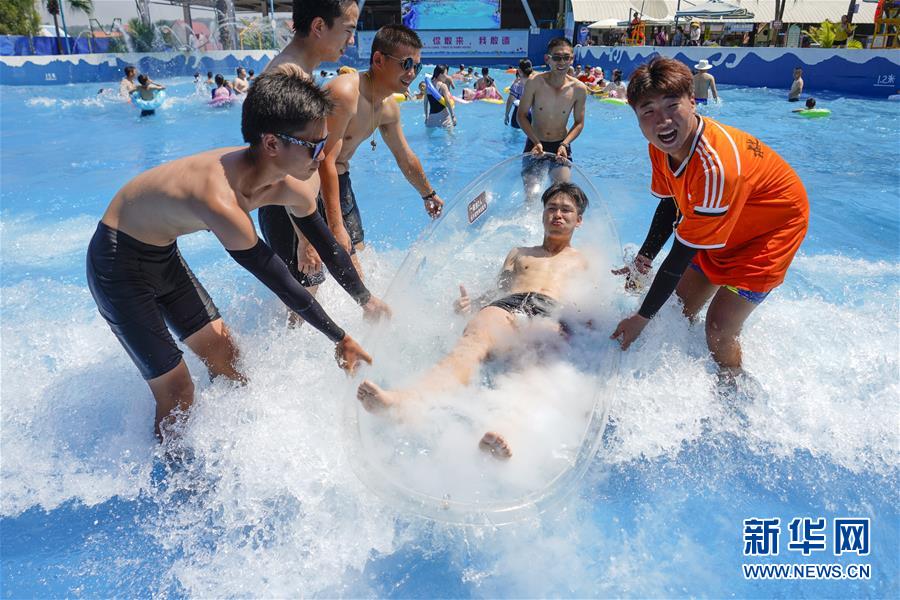 8月5日,重慶涪陵紅酒小鎮(zhèn)水上樂園內(nèi),一名游客躺在裝滿冰塊的冰船內(nèi)。當(dāng)日,重慶市氣象臺再次發(fā)布“高溫橙色預(yù)警信號”,重慶大部分海拔400米以下地區(qū)日最高氣溫將升至37℃以上,局地可達(dá)40℃以上。許多重慶市民涌進(jìn)當(dāng)?shù)氐乃蠘穲@和泳池,在水中享受夏季的清涼。新華社記者劉潺攝