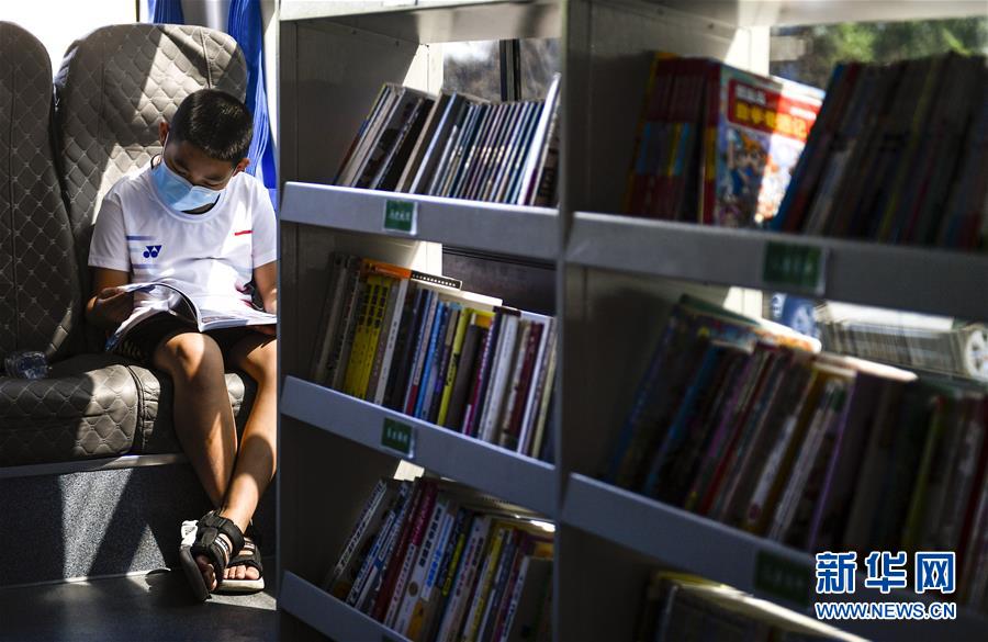 8月5日,小讀者在“流動(dòng)圖書(shū)館”里看書(shū)。三千冊(cè)圖書(shū),一輛大巴車,穿梭在城市的街頭巷尾。在吉林長(zhǎng)春,長(zhǎng)春市圖書(shū)館利用流動(dòng)圖書(shū)車,定期在市內(nèi)15個(gè)固定服務(wù)點(diǎn)間巡回流動(dòng),為市民提供便捷的圖書(shū)借閱服務(wù)。新華社記者許暢攝