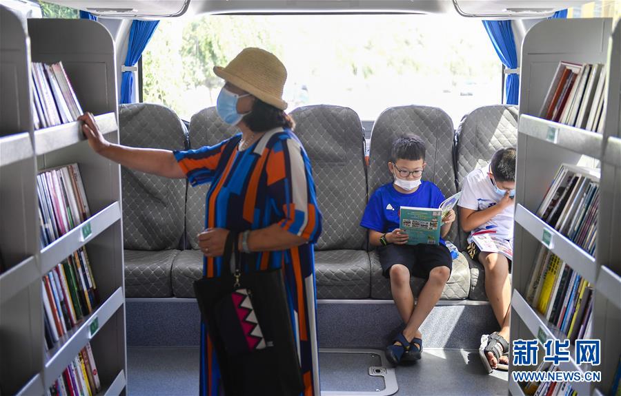 8月5日,長(zhǎng)春市民在“流動(dòng)圖書(shū)館”里看書(shū)。三千冊(cè)圖書(shū),一輛大巴車,穿梭在城市的街頭巷尾。在吉林長(zhǎng)春,長(zhǎng)春市圖書(shū)館利用流動(dòng)圖書(shū)車,定期在市內(nèi)15個(gè)固定服務(wù)點(diǎn)間巡回流動(dòng),為市民提供便捷的圖書(shū)借閱服務(wù)。新華社記者許暢攝