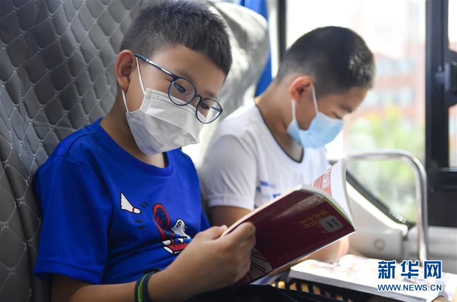 8月5日,小讀者在“流動(dòng)圖書館”里看書。三千冊(cè)圖書,一輛大巴車,穿梭在城市的街頭巷尾。在吉林長春,長春市圖書館利用流動(dòng)圖書車,定期在市內(nèi)15個(gè)固定服務(wù)點(diǎn)間巡回流動(dòng),為市民提供便捷的圖書借閱服務(wù)。新華社記者許暢攝