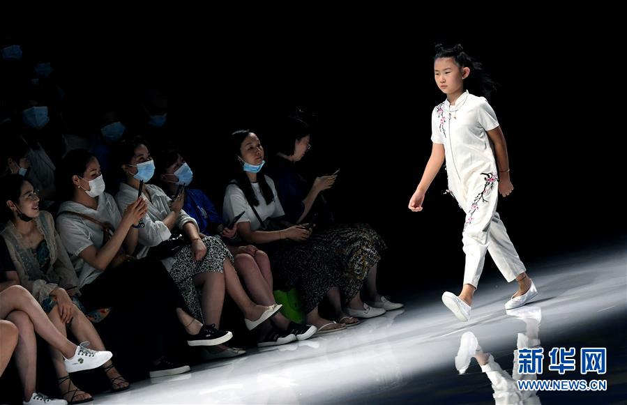 8月7日,小模特在T臺上展示童裝。當日,2020中國(河南)國際大學生時裝周舉行童裝設計專場展示。8月5日至7日,2020中國(河南)國際大學生時裝周在河南省新密市豫發(fā)密蘭小鎮(zhèn)舉行。新華社記者朱祥攝