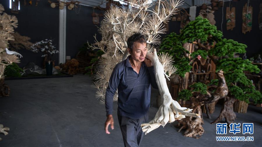 8月7日,一名工人在永??h永安鄉(xiāng)根雕工藝品就業(yè)扶貧車間搬運(yùn)根雕半成品。2017年以來,廣西桂林市永??h永安鄉(xiāng)通過幫扶返鄉(xiāng)青年創(chuàng)業(yè)的方式,建立起根雕工藝品就業(yè)扶貧車間,組織貧困群眾進(jìn)車間務(wù)工學(xué)藝,把當(dāng)?shù)刎S富的朽木和柑橘樹根枝資源利用起來,加工成盆景、茶桌、吊燈等根雕工藝品,不僅幫助貧困群眾在家門口掌握一技之長,還讓他們在脫貧摘帽后實(shí)現(xiàn)穩(wěn)定增收。新華社記者張愛林?jǐn)z