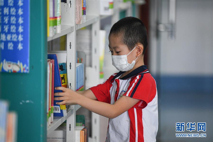 8月8日,小朋友在位于??诘暮D鲜D書館查找圖書。新華社記者 蒲曉旭 攝