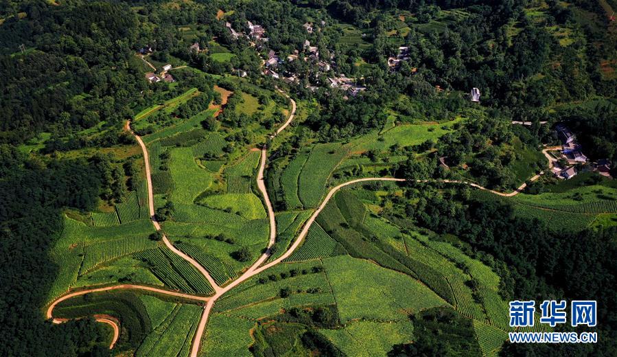 陜西省洛南縣石門(mén)鎮(zhèn)花廟村的連戶路(7月27日攝,無(wú)人機(jī)照片)。新華社記者劉瀟攝。