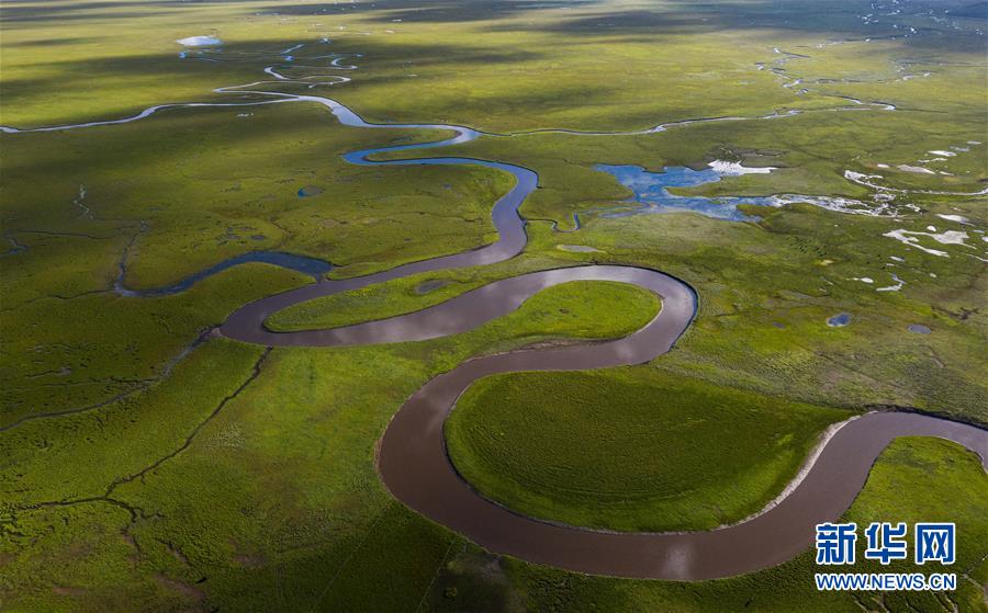 俯瞰泥拉壩濕地里發(fā)辮般的河流,該濕地泥炭富集、水系發(fā)達(dá)(8月9日攝,無人機(jī)照片)。