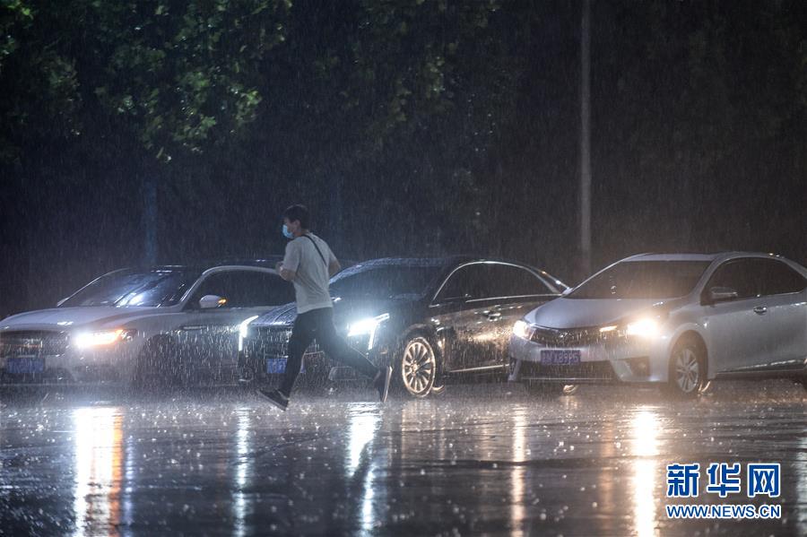 8月12日,北京市大興區(qū)亦莊鎮(zhèn),一名沒帶雨具的市民在雨中奔跑。新華社記者 彭子洋 攝