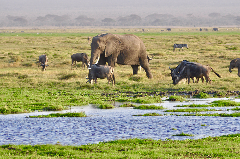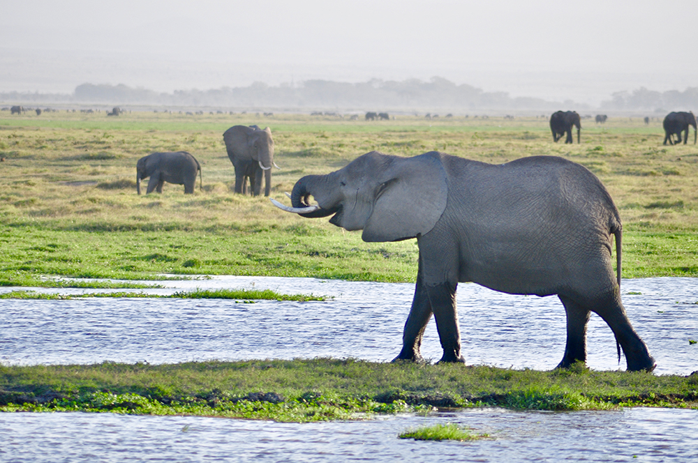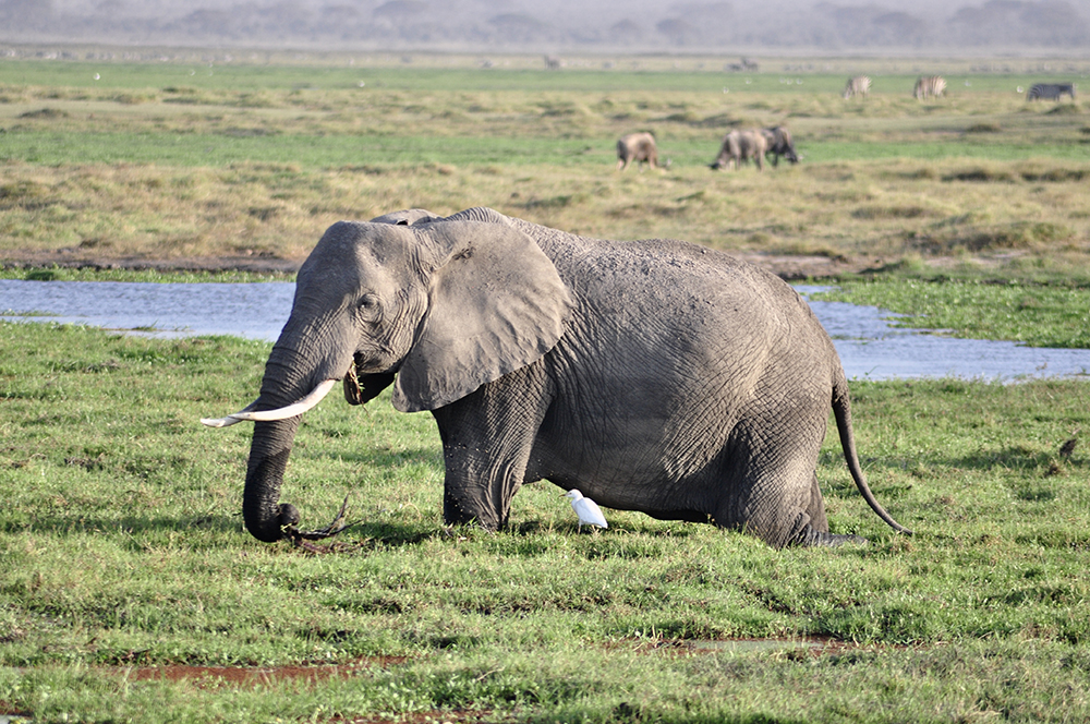 如今在肯尼亞,大象已經(jīng)受到最為嚴(yán)格的保護,安博塞利國家公園就是一座野生草原象的保護地。圖為野生大象家園里的大象。李仁奇 攝