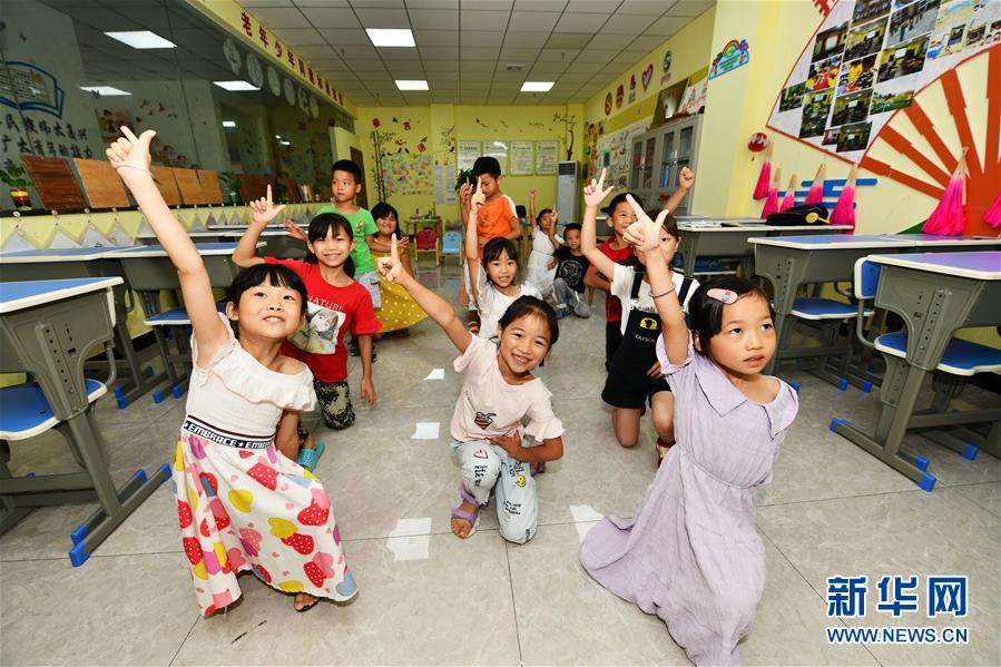 8月13日,貴州省思南縣雙塘街道麗景社區(qū)易地扶貧搬遷安置點(diǎn)的孩子們在上音樂課。新華社記者楊文斌攝