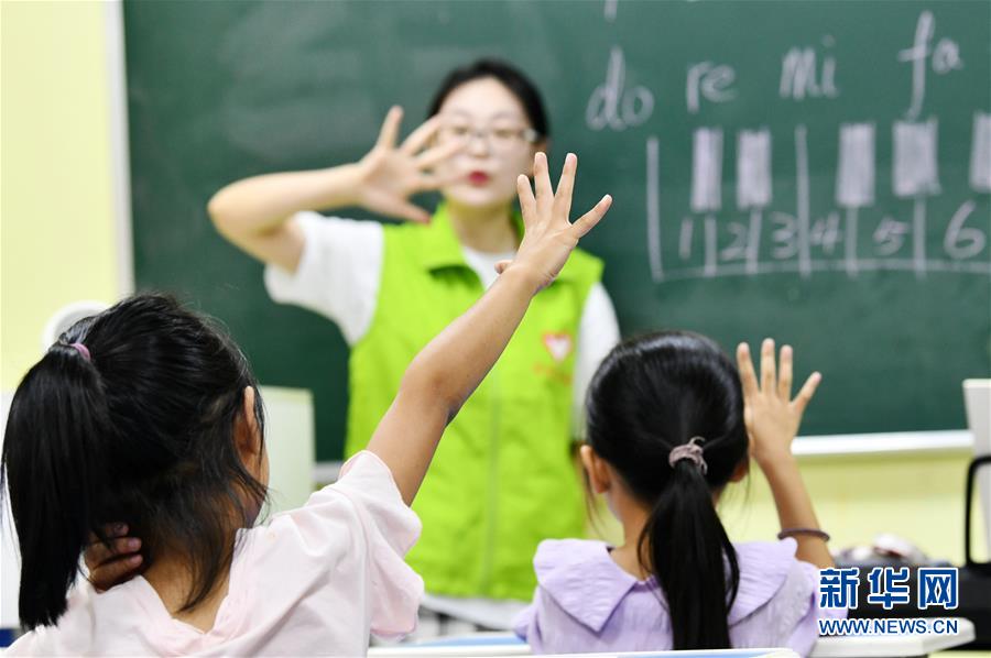 8月13日,在貴州省思南縣雙塘街道麗景社區(qū)易地扶貧搬遷安置點(diǎn),志愿者在給孩子們上音樂課。今年暑假期間,在貴州省銅仁市思南縣雙塘街道麗景社區(qū)易地扶貧搬遷安置點(diǎn),來自北京有研集團(tuán)和思南當(dāng)?shù)氐闹驹刚邆兝檬钇跁r(shí)間,給安置點(diǎn)的孩子們進(jìn)行音樂、體育、手工、安全教育等課程輔導(dǎo),幫助搬遷戶照看孩子,讓孩子們在學(xué)習(xí)中度過一個(gè)快樂而有意義的暑假。新華社記者楊文斌攝
