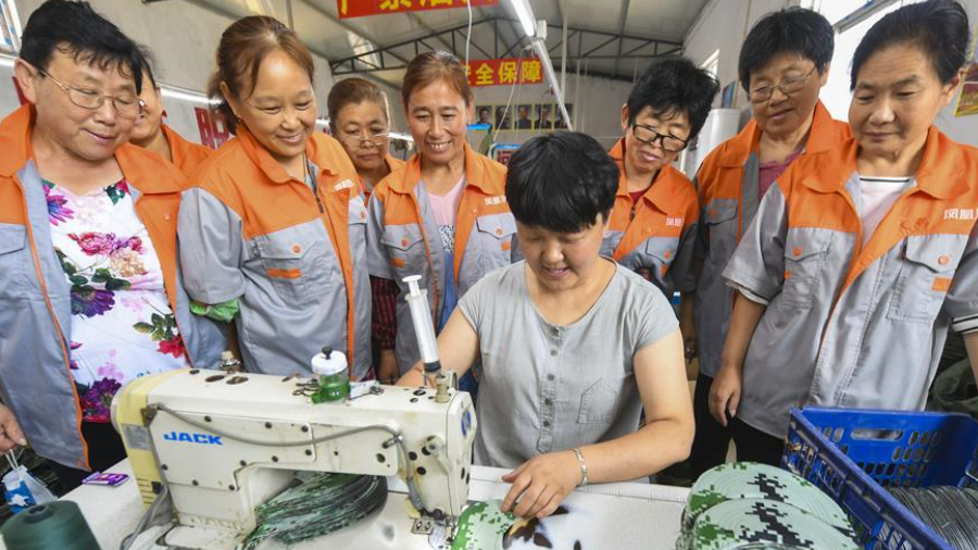 7月13日,河北省內丘縣一家玩具生產企業(yè)工人在加工毛絨玩具。