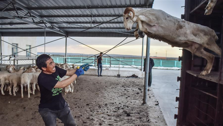 在新疆察布查爾錫伯自治縣一處生態(tài)扶貧林,當(dāng)?shù)刎毨魧⑿藜敉甑臉?shù)枝拉回家喂牲畜(6月16日攝)。