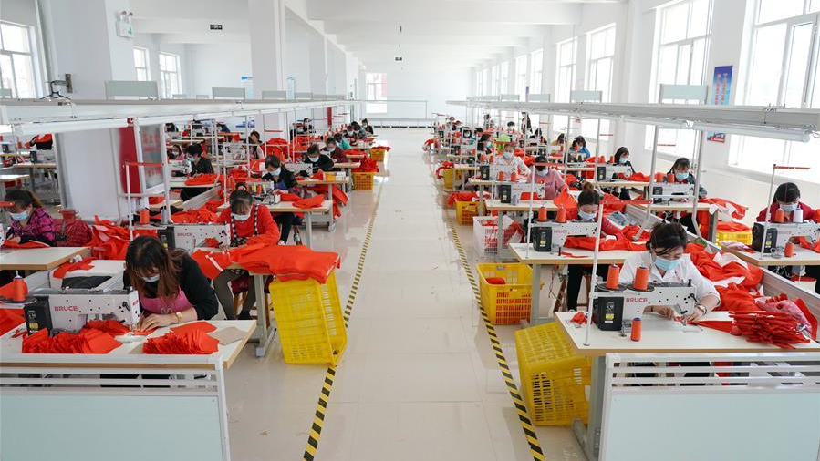 6月2日,工人在武強(qiáng)縣一家樂(lè)器廠生產(chǎn)車間內(nèi)組裝薩克斯。