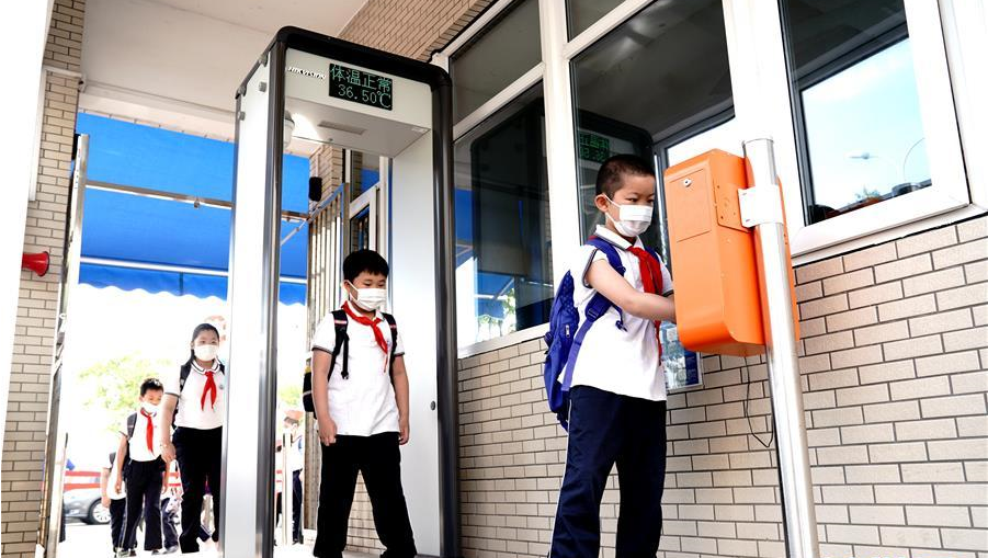 6月2日,上海閔行區(qū)鑫都小學(xué)的學(xué)生走進(jìn)校園。