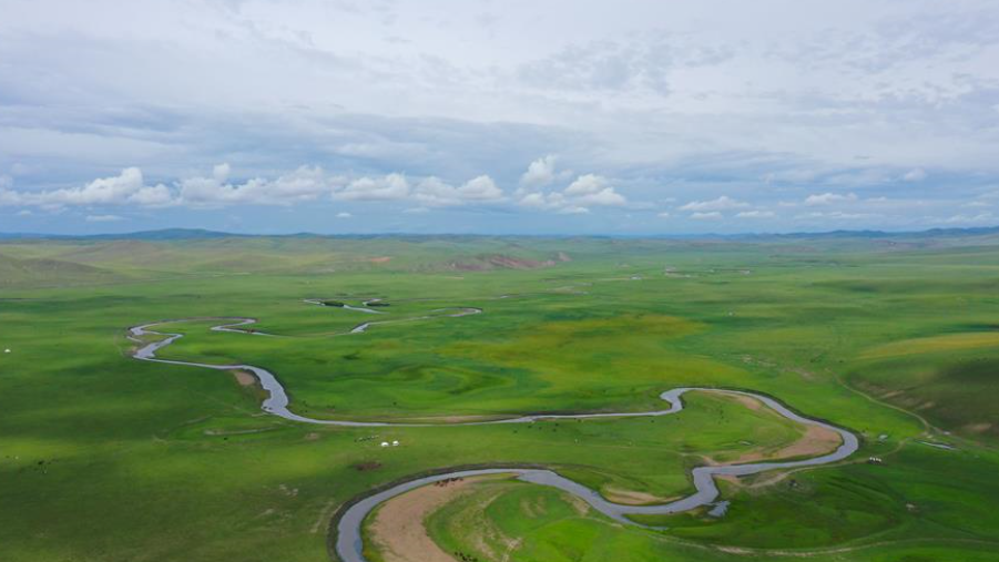 這是在呼倫貝爾陳巴爾虎旗牧云山頂拍攝的莫日格勒河(8月3日攝,無人機(jī)照片)。