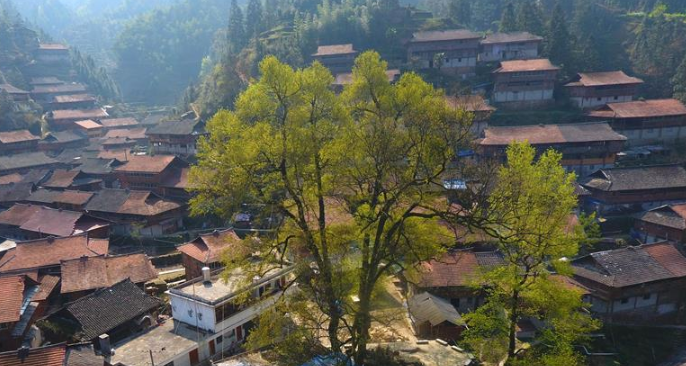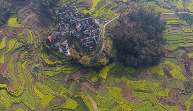 這是3月29日無(wú)人機(jī)拍攝的廣西融水苗族自治縣桿洞鄉(xiāng)黨鳩村的田園春色。