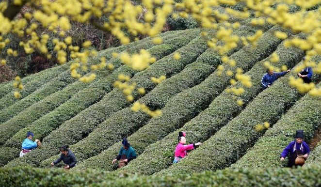 近日,隨著氣溫回升,貴州省黔東南苗族侗族自治州丹寨縣“扶貧茶園”的春茶陸續(xù)進(jìn)入采摘期。