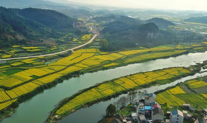 近日,隨著氣溫持續(xù)回升,廣西融安縣境內(nèi)的油菜花開(kāi)放,春意盎然。