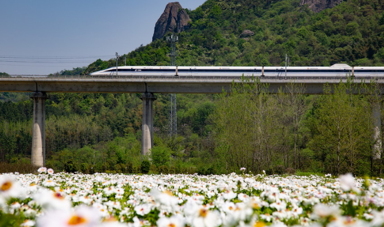 隨著氣溫回升,安徽省銅陵市境內(nèi)的鳳丹競(jìng)相綻放,高鐵列車(chē)穿行其間,成為春日里一道美麗的風(fēng)景線。