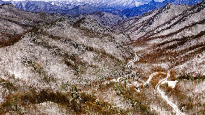 當(dāng)日,秦嶺初雪,色彩斑斕的秋色在白雪映襯下,美如畫(huà)卷,置身其間,恍若進(jìn)入童話世界