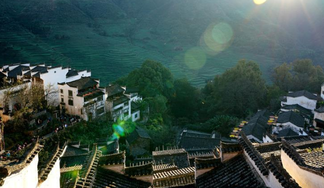 雨后放晴的江西婺源縣,藍(lán)天白云與依山傍水的徽派古村落形成了一幅幅美麗畫(huà)卷。