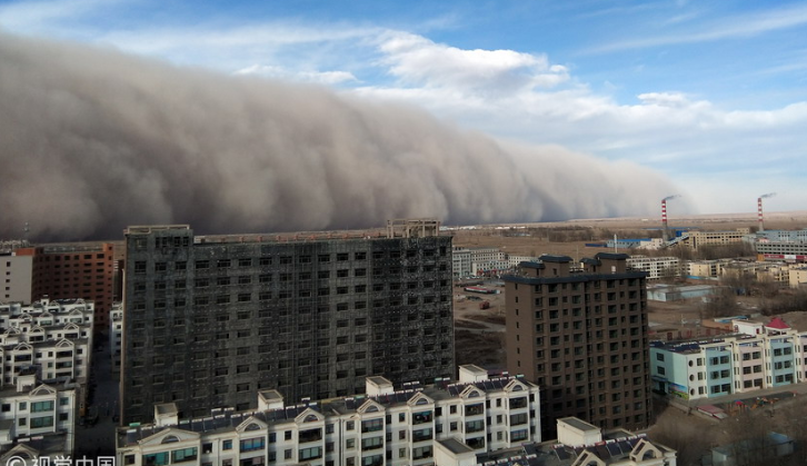 甘肅張掖沙塵暴來(lái)襲 “沙墻”高達(dá)上百米