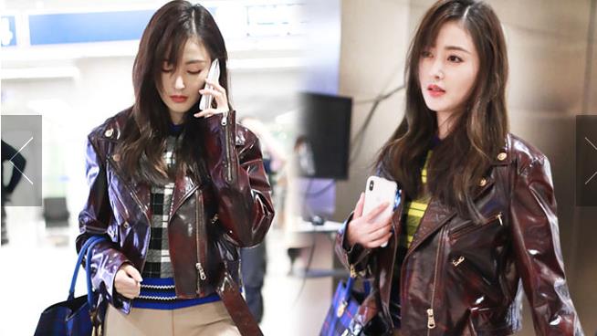 張?zhí)鞇?ài)漆皮夾克又潮又帥 低頭疾走打電話氣場(chǎng)十足